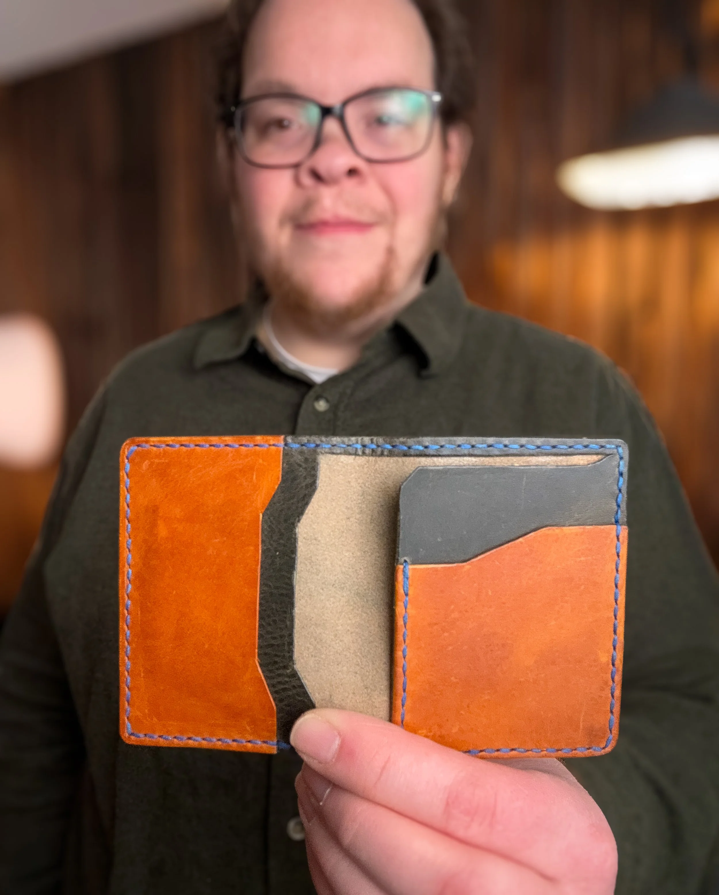 My name is Brian Moretti. I’m the maker behind MittenMade Leather. My journey into the world of leather craft began in 2020 during the pandemic. Like most of us, I was stuck at home and needed something to occupy all of my free time. One day I came across a YouTube video of someone making a leather wallet. I enjoyed it so much I watched another one, and another one, and then binged ten more. I was hooked. Leather crafting seemed so fun and accessible. It felt like a natural fit for my creative and obsessive personality.